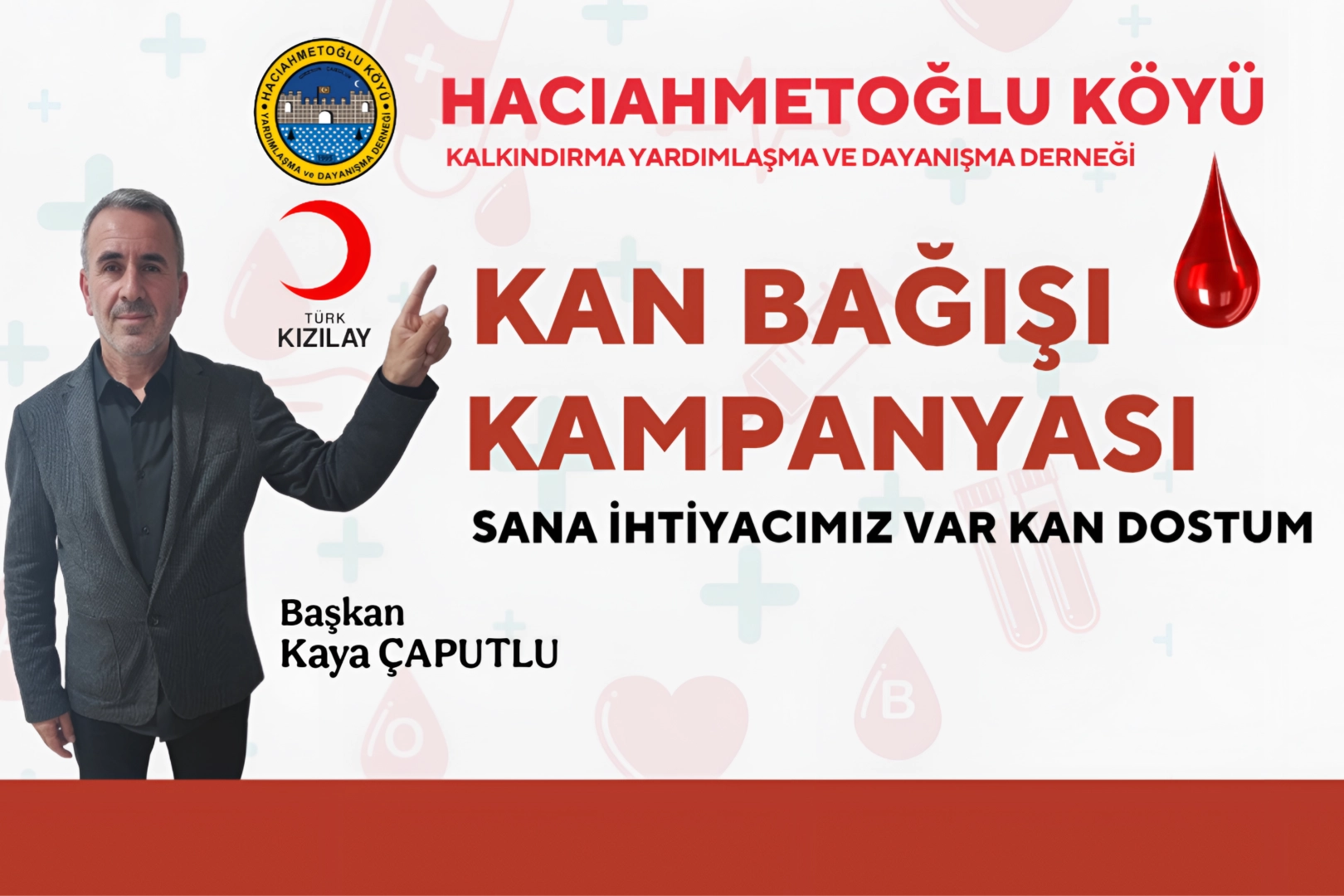 "Sana İhtiyacımız Var Kan Dostum" sloganıyla yola çıkan Hacıahmetoğlu köyü Dernek Başkanı Kaya Çaputlu ve yönetimi, her 15 saniyede bir kişinin kana ihtiyacı olduğunu hatırlatarak, tüm bölge halkını bu önemli sorumluluğu yerine getirmeye ve hayat kurtarmaya çağırdı. Tüm hemşehrilerimiz davetlidir denildi.