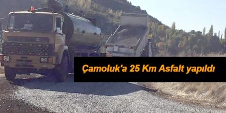 Çamoluk'ta köy yollarına 25Km asfalt uygulaması yapıldı.