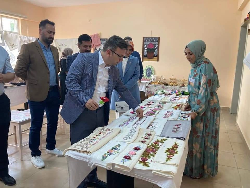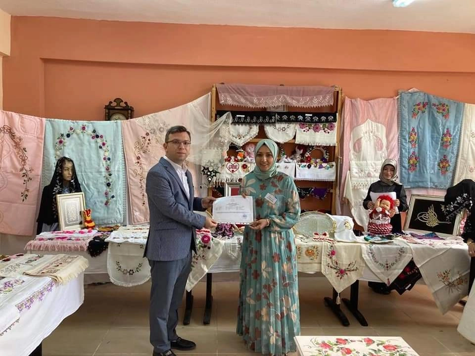 Halk Eğitim Merkezi bünyesinde düzenlenen yılsonu sergisinde el işi nakıştan, çeyiz setlerine, el dokuması halılardan çini vazolara kadar birçok ürün yer aldı.