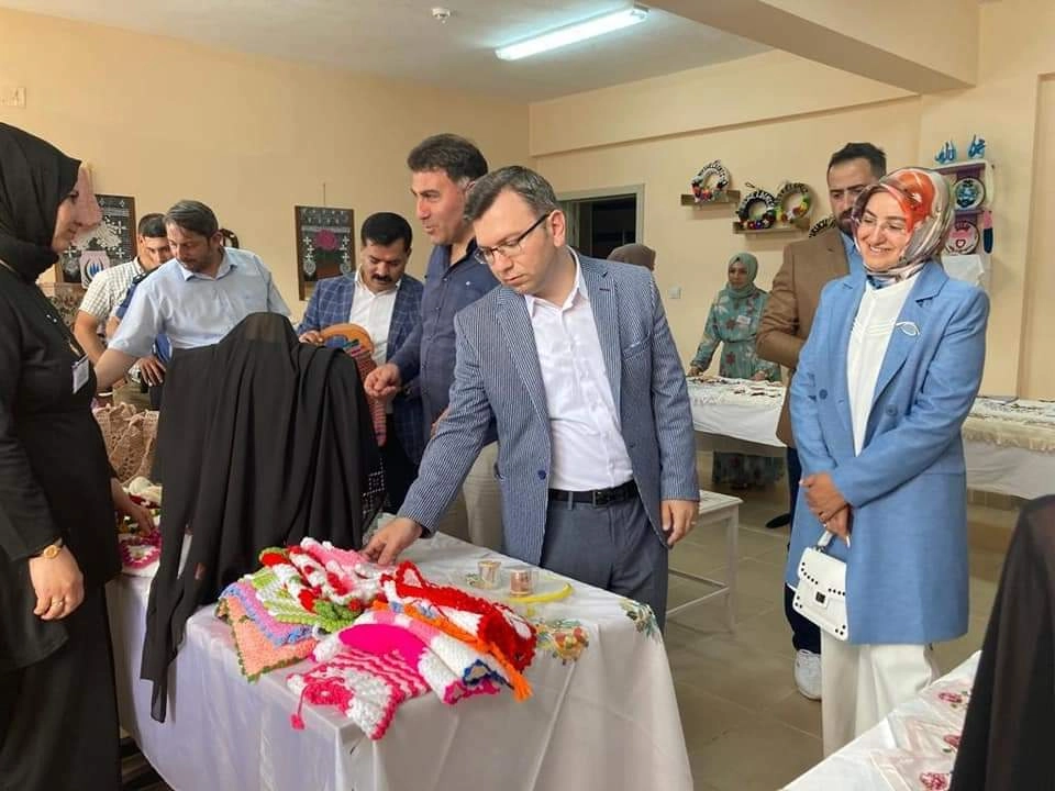 Sergi açılışını gerceklestiren ilçe Kaymakamı ve protokol üyeleri, kursiyerler tarafından hazırlanan birbirinden güzel el emeği ürünlerin sergilendiği tüm stantları tek tek gezdiler. Kursiyer ve öğreticilerden bilgi alan Kaymakam Berber emeği geçen herkese teşekkür ederek kursiyerlere sertifikalarını teslim etti başarılar diledi.