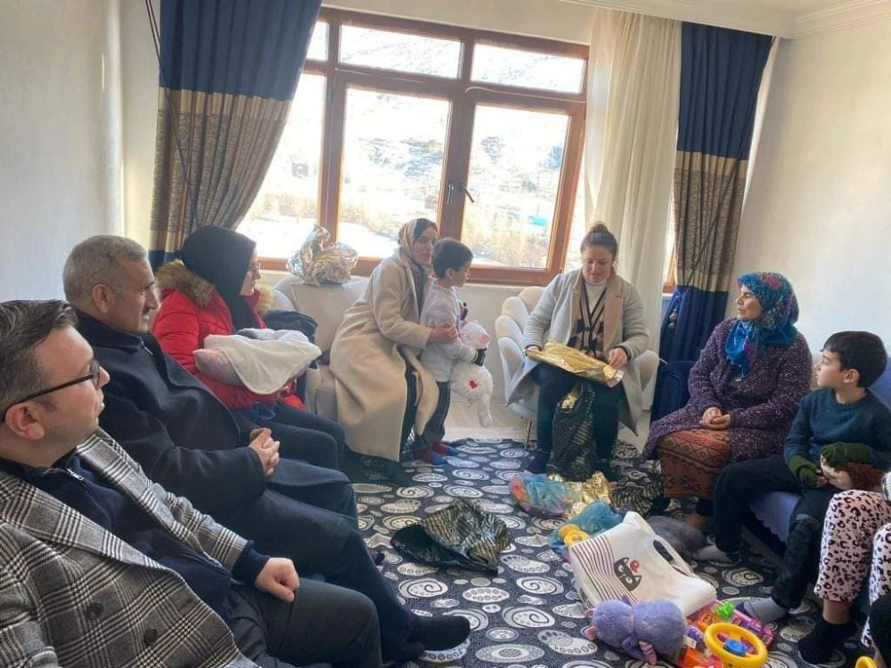 Çamoluk Kaymakamı Furkan Berber depremden etkilenen ve ilçede misafir edilen depremzede aileleri ziyaret etti.