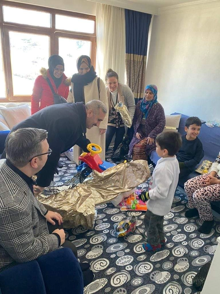 Misafir çocukları'da düşünen heyet, hediyelerini takdim ederek minikleri sevindirdiler.