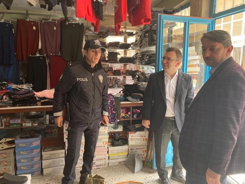 Kaymakam ve Belediye Başkanının esanf ziyaretine, Komiser Yardımcısı İlçe Emniyet Amir Vekili Mustafa Arslan'da eşlik etti.