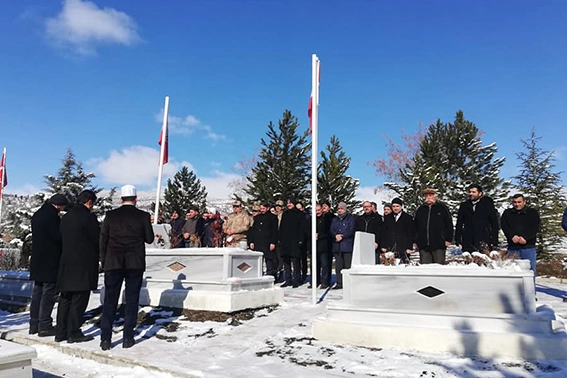 Türkiye'nin terörden arındırmak için harekat düzenlediği Suriye'nin Afrin bölgesinde şehit olan Kılıçtutatn Köyünden Piyade Uzman Çavuş Hamza Karacaoğlu Çamoluk Şehitliğindeki kabri başında dualarla anıldı.