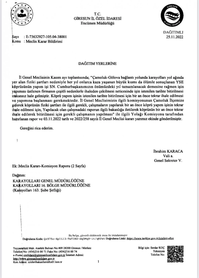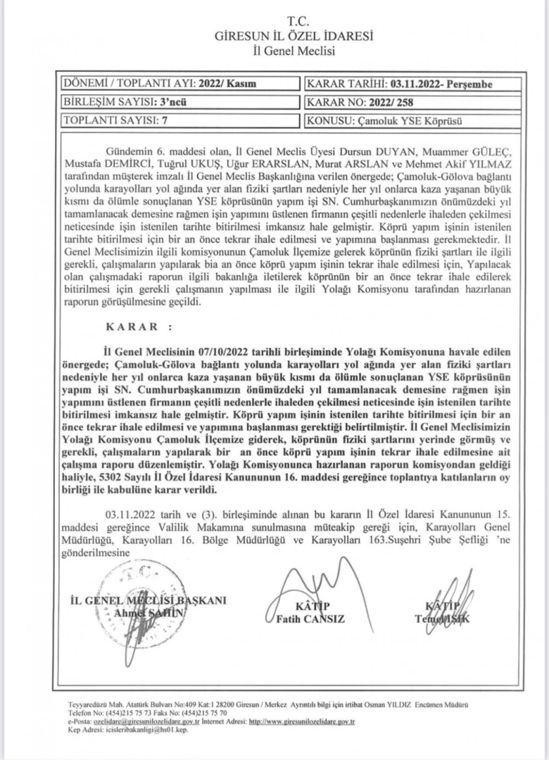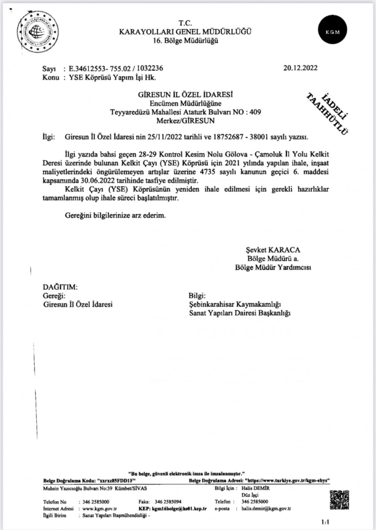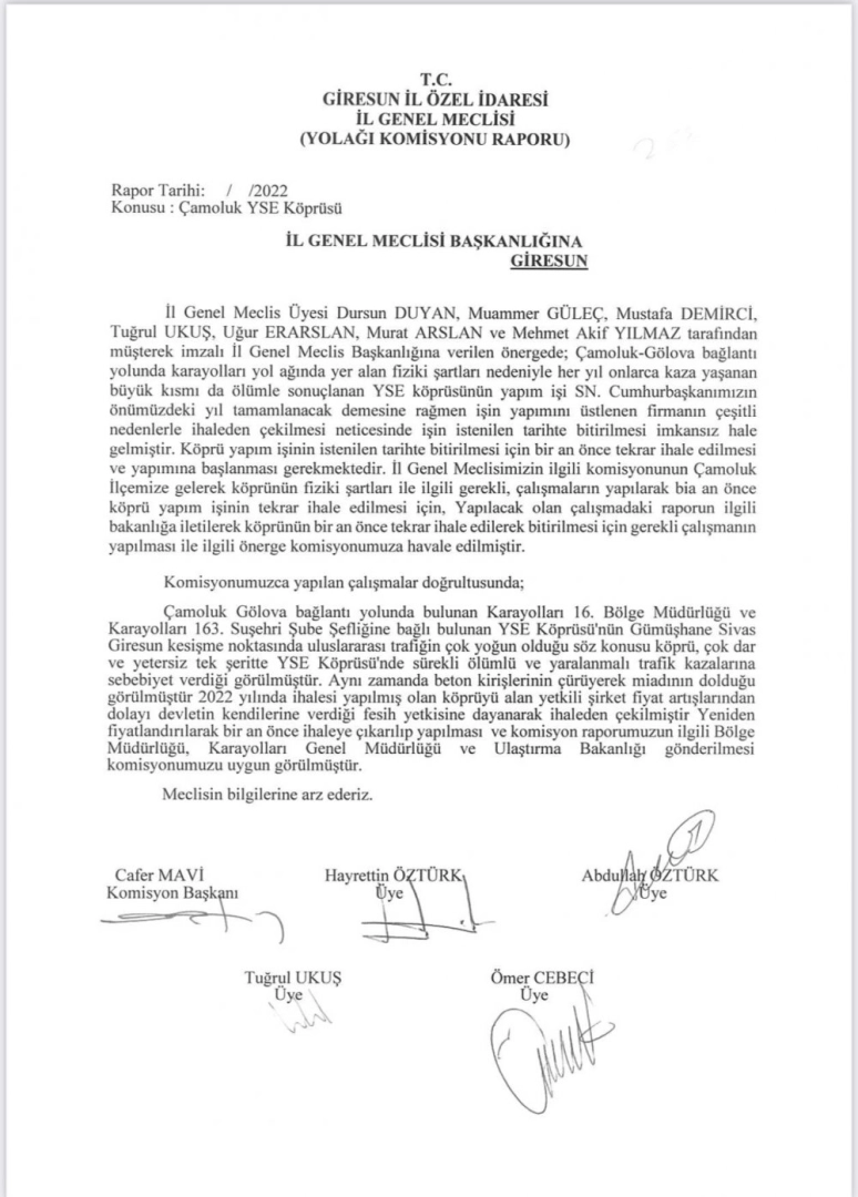 İl Genel Meclis Üyesi Dursun Duyan söz konusu köprü için, sosyal medya hesabından yazılı açıklamasında bulundu., Duyan şu ifadelere değindi " YSE köprüsünde sona gelindi ihale süreci resmen başlamıştır memleketimize milletimize hayırlı olsun. Devletin dili yazı dilidir İl Genel Meclisimize meclis üyesi arkadaşlarımla önerge vererek ilçemizin kanayan yarası olan YSE köprüsünün durumu hakkında yapmış olduğumuz komisyon çalışmaları meyvesini verdi. Sürecin hızlanması için önergeyi verdiğim günden bu güne kadar elinden gelen çabayı sarf eden Başta Sn. Valimiz Enver Ünlü beye, İl Genel Meclis Başkanımız Ahmet Şahin e, Genel Sekreterimiz İbrahim Karaca’ya, Değerli Meclis Üyelerimize ve yol ağı komisyonu başkanımız ve komisyon üyelerimize ilçem adına teşekkür ediyorum" dedi.