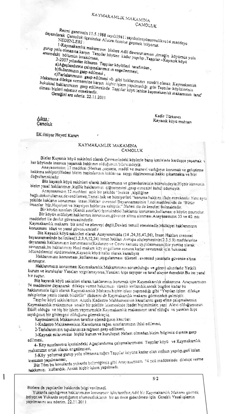 Kayacıklılar, sürekli olarak dilekçe vermelerine rağmen, Çamoluk Kaymakamlığının taraflı davrandığını söylediler.