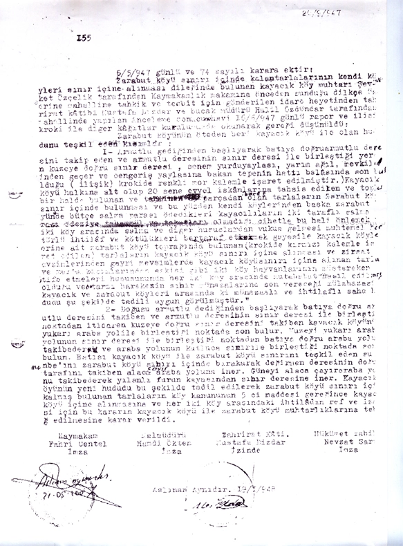 Taşçılar Köyünün göndermiş olduğu 155 nolu karar