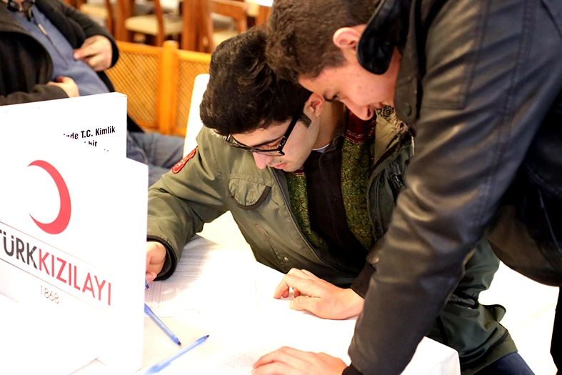 Çamoluk Derneğine Kan vermek için gelen Suriyeli gençler de 3 Yıllık T.C. kaydı taşımadıkları gerekçesiyle kan veremediler.