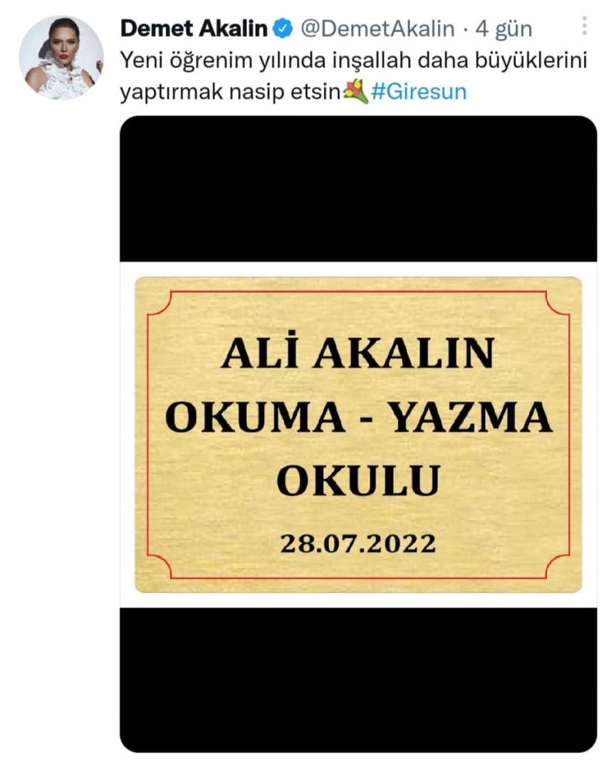 Aktepe köylülerinin ve köydeki öğrencilerin, yoğun katılım gösterdiği açılış töreninde konuşan köy Muhtarı Hüseyin Seyyidhanoğlu, “Beşiktaş Çarşı Kadın Grubu Avukatı Devrim Alparslan ile iletişime geçerek virane durumda olan köy okulunun restore edilmesi için destek istedik. Bizi kırmadılar. Çarşı Kadın grubundan Demet Akalın'a ulaşılmış ve Demet Hanım da projeyi kabul ederek merhum babasının adına okul binasını komple tadilat ettirdi.