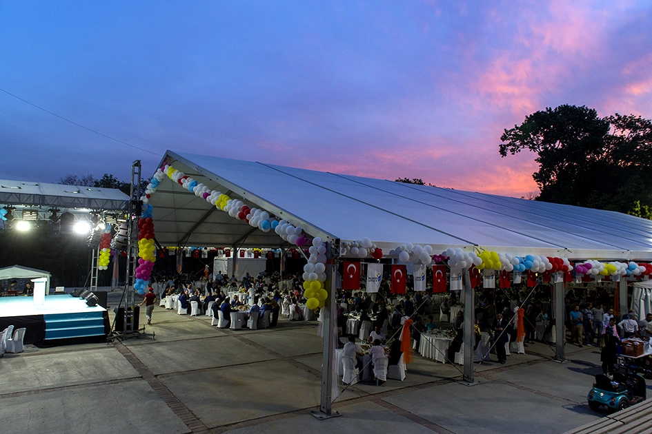 Hayır sahipleri tarafından karşaılanan iftar programına katılım yoğun oldu.