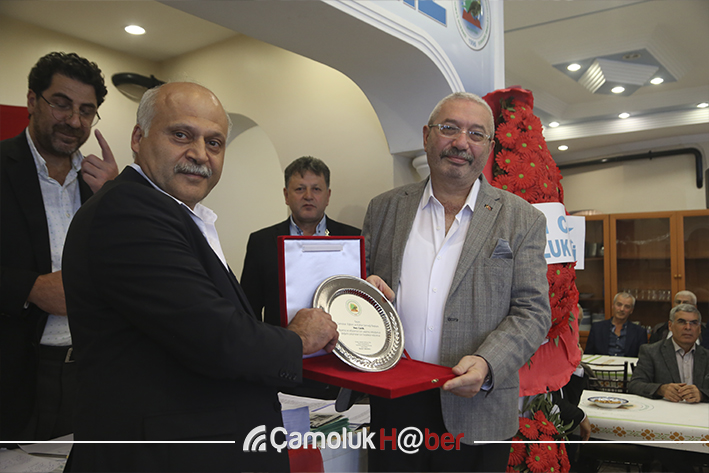 Dernek Başkanı Mevlüt Tamzaralı  desteklerinden dolayı Çamoluk Dernek Başkanı Hacı Canik'e plaket verdi.