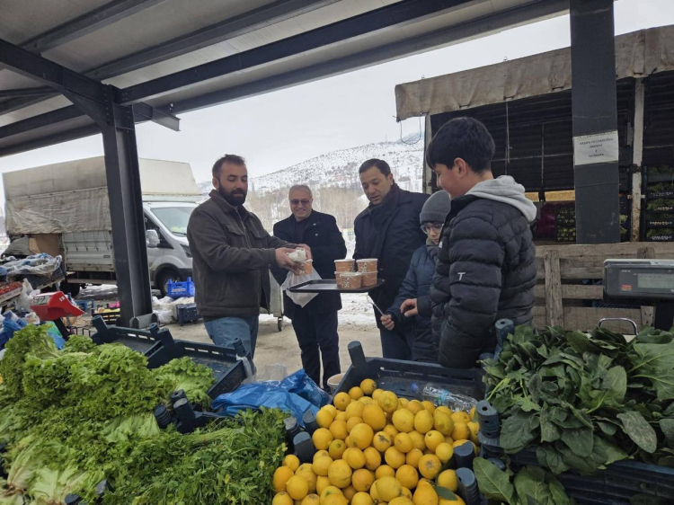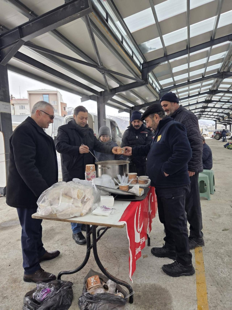 Yeniden Refah Partisi Çamoluk İlçe Teşkilatı, sabahın erken saatlerinde pazar yerinde tezgah açan esnafa ve vatandaşa sıcak çorba ikramında bulundu.