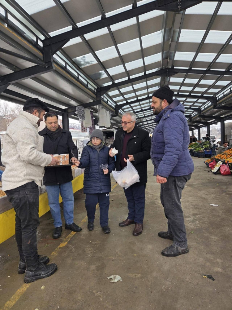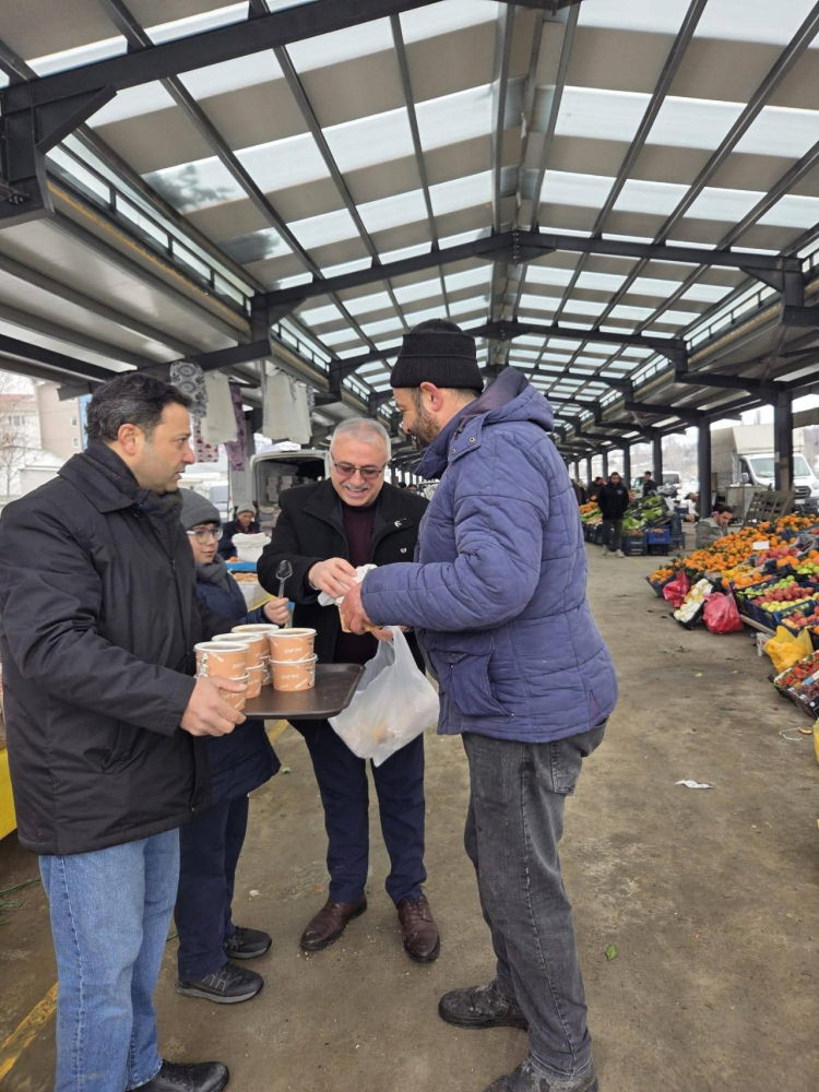 Haftanın Çarşamba günleri kurulan ilçe pazarında her hafta olduğu gibi, bu hafta da "Sıcak Gönüller Durağı" adıyla kurulan stantta, İlçe Başkanı Selim Ekinci çorba kazanının başına geçerek vatandaşlara ikramda bulundu.