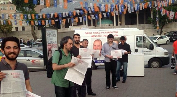 Üsküdar meydanına kurulan platformda vatandaşlara diriliş ışığı gazetesi ücretsiz olarak veriliyor.